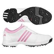 adidas Girls Tech Response Golf Shoes (White/White/Blossom) The adidas Girls Tech Response Golf Shoes are a blend of ultra-light construction, athletic styling and advanced performance technologies. THiNTech low-profile technology brings the athlete closer to the course than ever before, promoting consistently solid ball-striking through added stability and improved footwork. Features: Synthetic leather for lightweight comfort and durability Die-cut EVA for lightweight comfort New, exclusive THiNTech cleat brings the foot closer to the ground and delivers exceptional grip in all conditions adiTUFF technology features an abrasion-resistant material to protect the toe from excessive wear and keeps the shoe looking better longer TRAXION secondary lugs provide maximum grip and prevent slippage on all types of ground surfacesYou will not be disappointed with